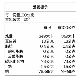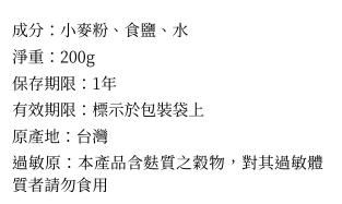 過敏原資訊:本產品含有麩質的穀類、大豆,不適合對其過敏體質者食用。本產品與其他含有芝麻、