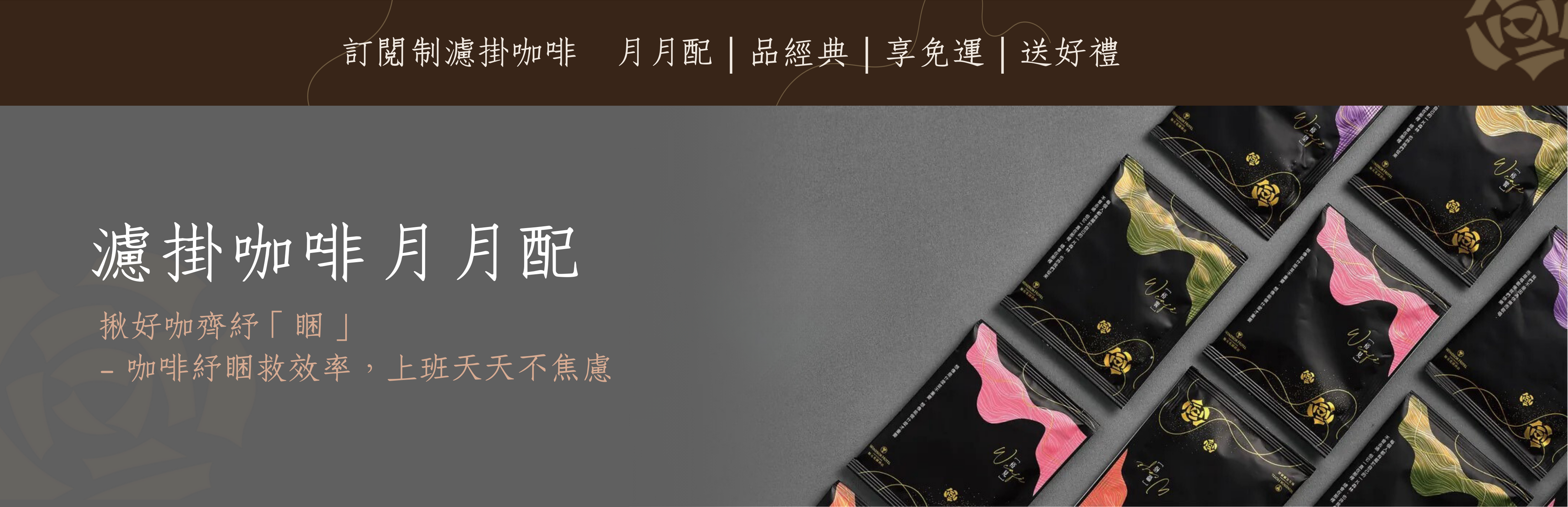 每月直送精選口味濾掛咖啡,每日不到38元就能解你的睏,天天都敞徉在咖啡香裡!