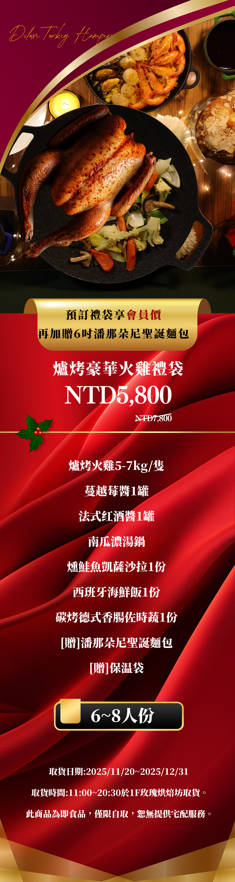 3. 單隻爐烤火雞恕不享早鳥優惠價與不另加贈潘那朵尼聖誕麵包