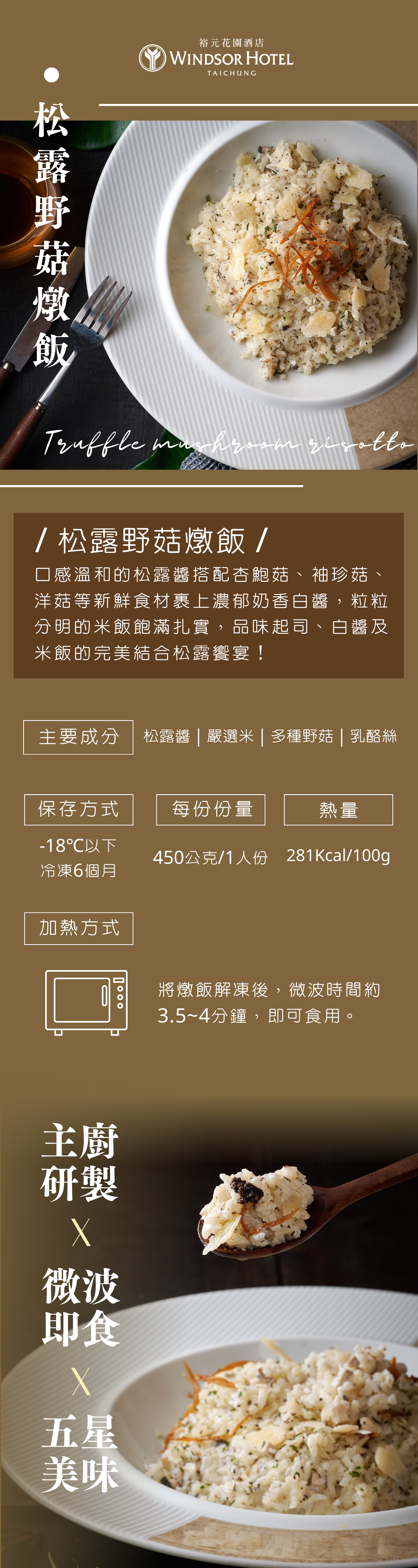|嚴選松露醬、新鮮野菇、特製白醬|